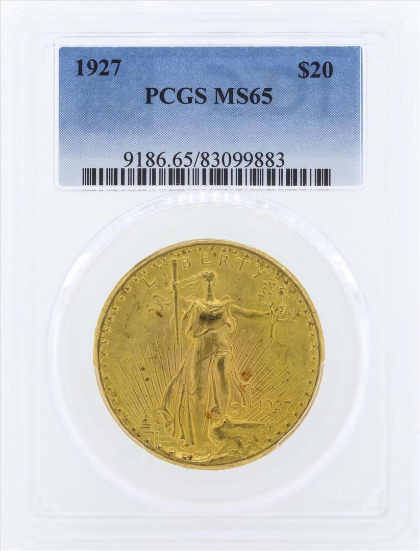 One 1927 $20 St. Gaudens Double Eagle Gold Coin PCGS MS65. PCGS Graded.