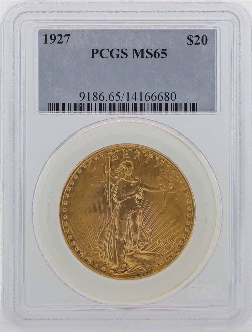 One 1927 $20 St. Gaudens Double Eagle Gold Coin PCGS MS65. PCGS Graded.