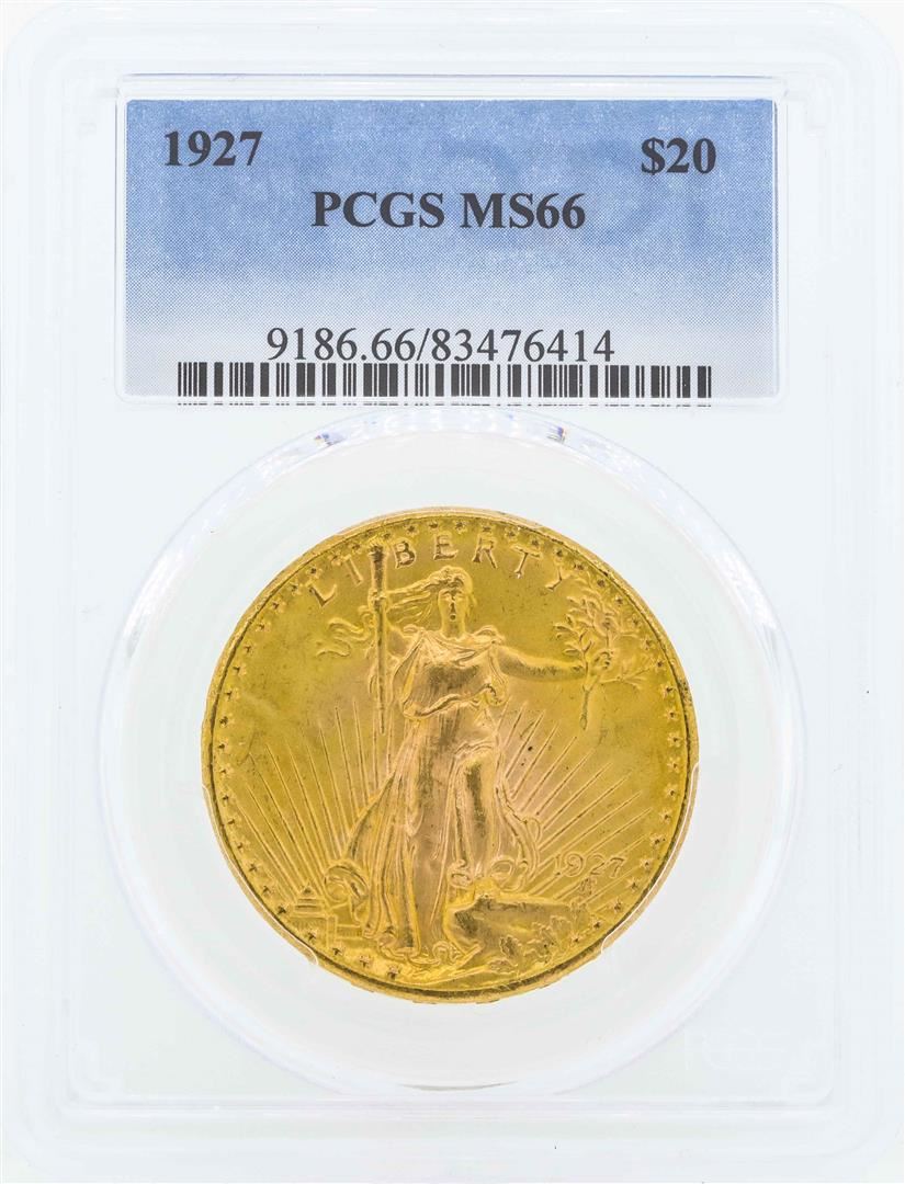 One 1927 $20 St. Gaudens Double Eagle Gold Coin PCGS MS66. PCGS Graded.