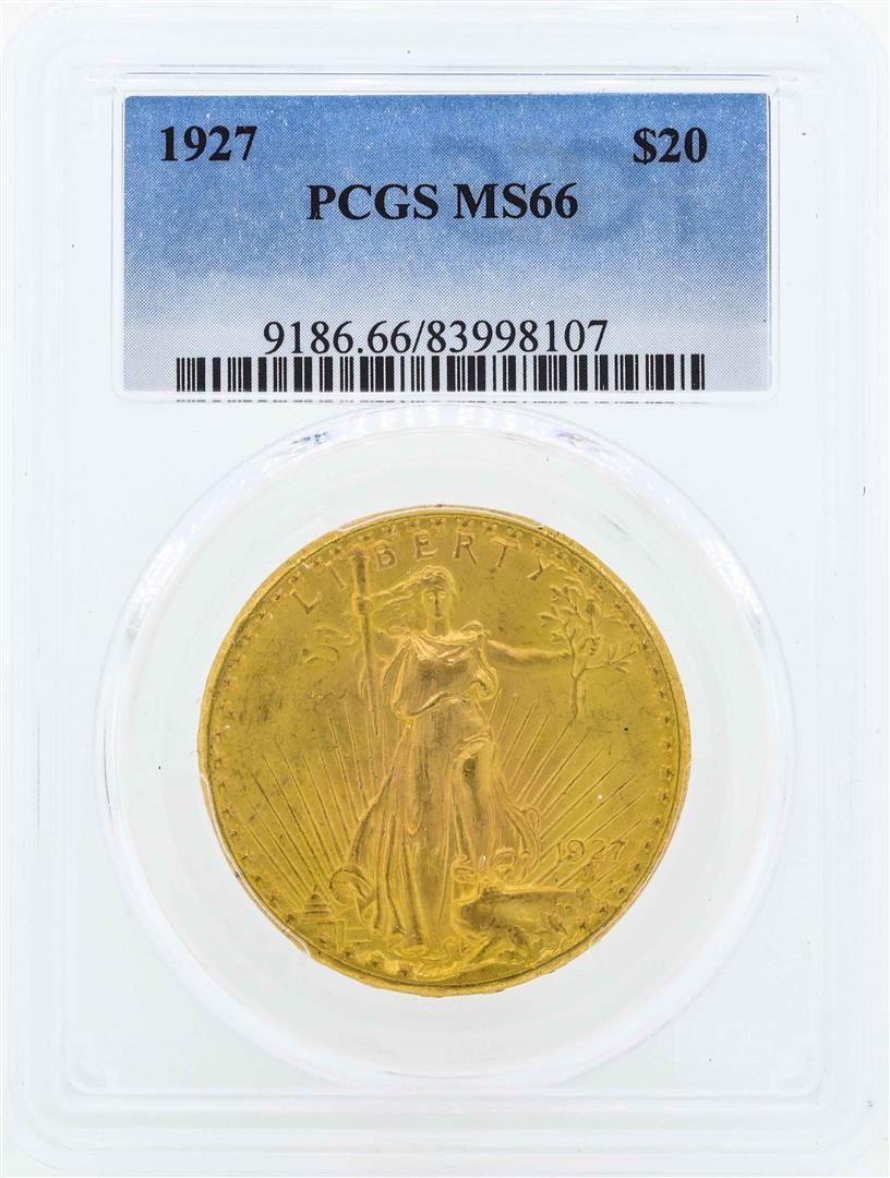 One 1927 $20 St. Gaudens Double Eagle Gold Coin PCGS MS66. PCGS Graded.