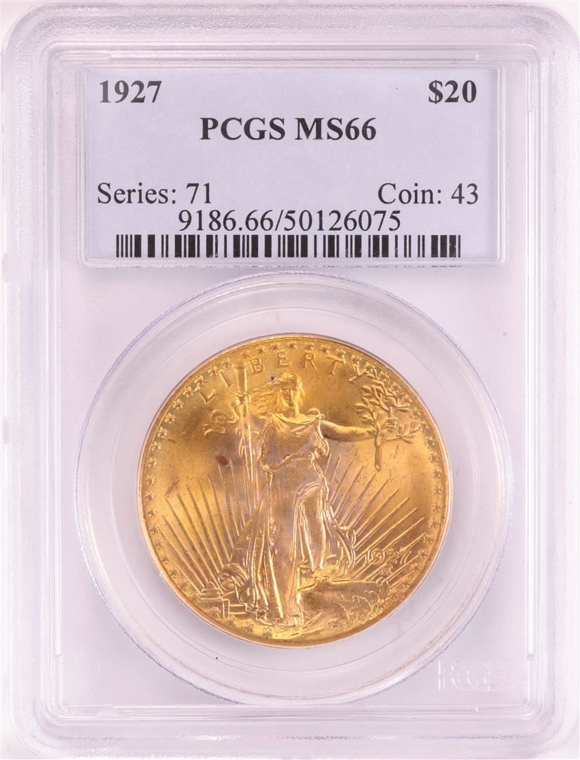 One 1927 $20 St. Gaudens Double Eagle Gold Coin PCGS MS66. PCGS Graded.