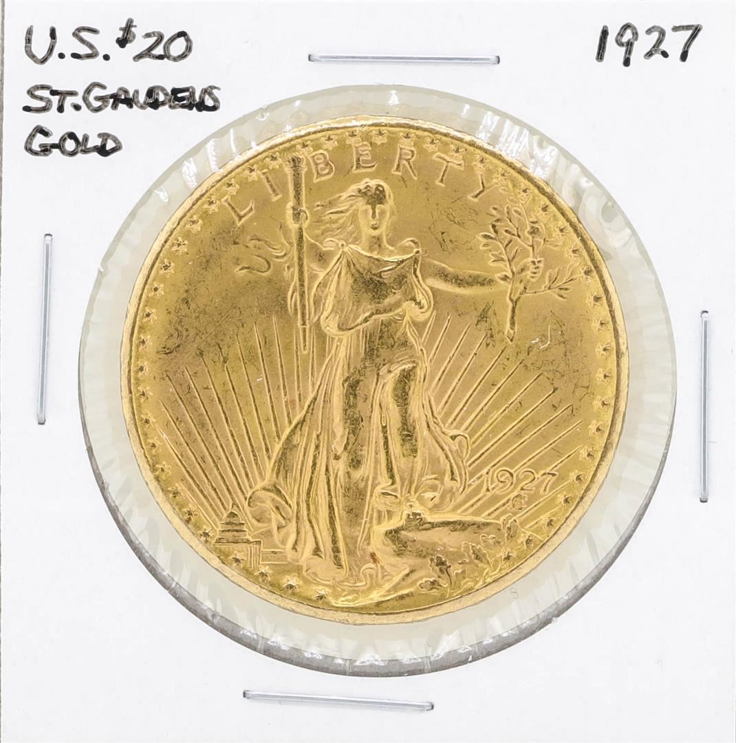 One 1927 $20 St. Gaudens Double Eagle Gold Coin.