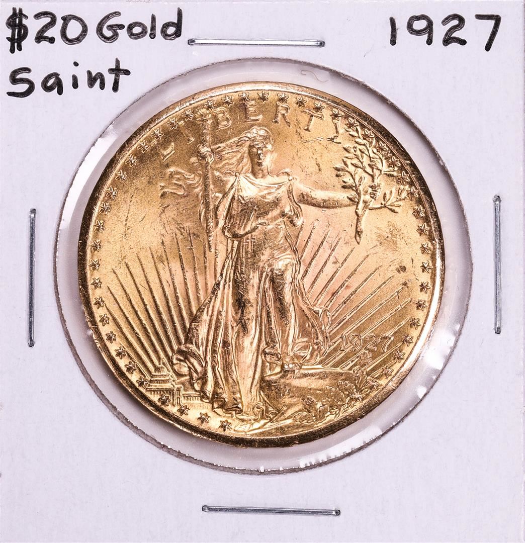 One 1927 $20 St. Gaudens Double Eagle Gold Coin.