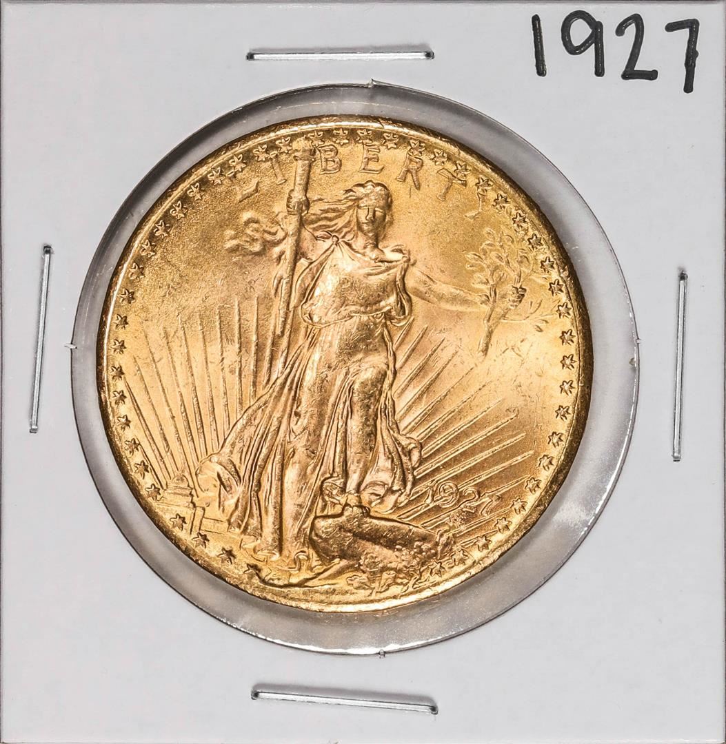 One 1927 $20 St. Gaudens Double Eagle Gold Coin.