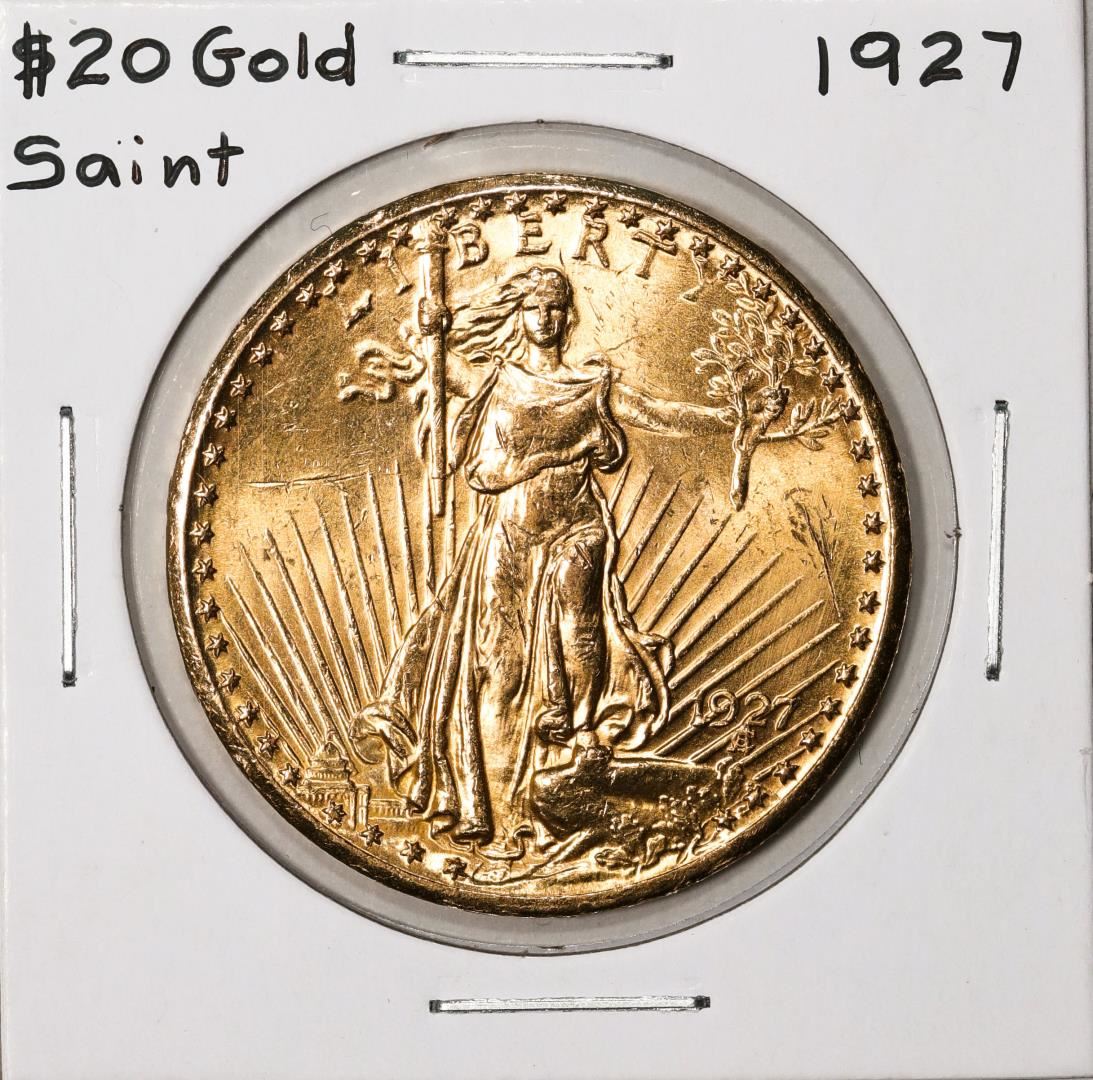One 1927 $20 St. Gaudens Double Eagle Gold Coin.