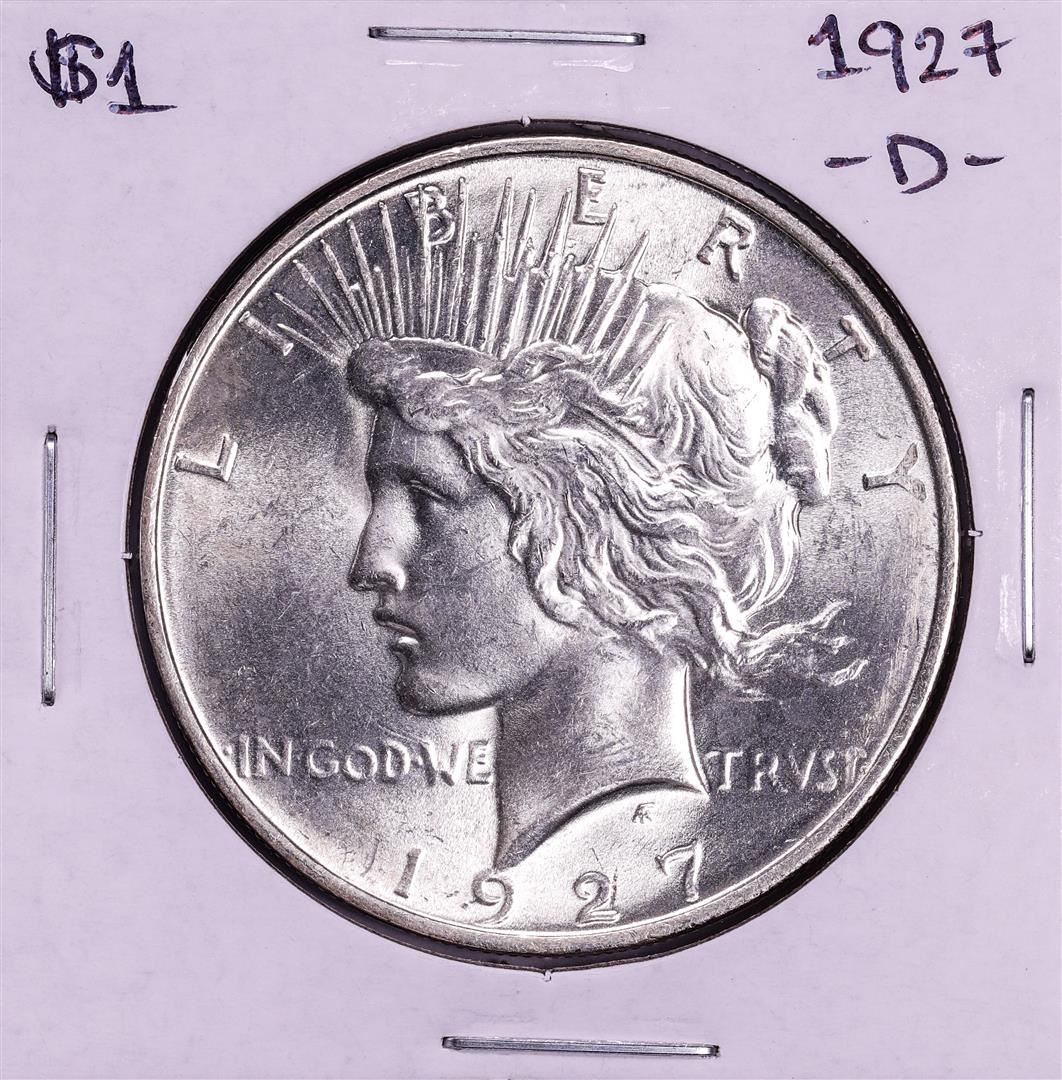 One 1927-D $1 Peace Silver Dollar Coin.