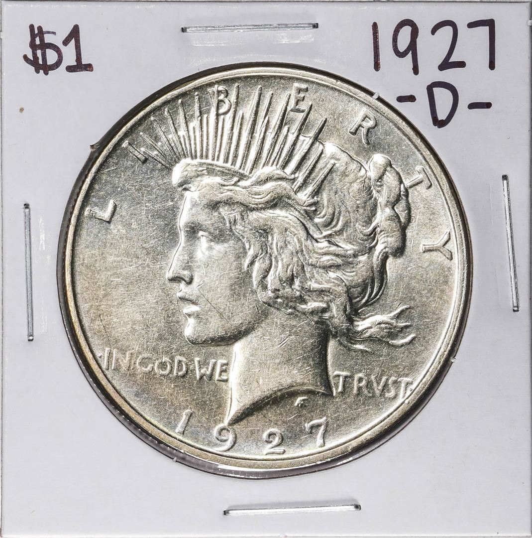 One 1927-D $1 Peace Silver Dollar Coin.