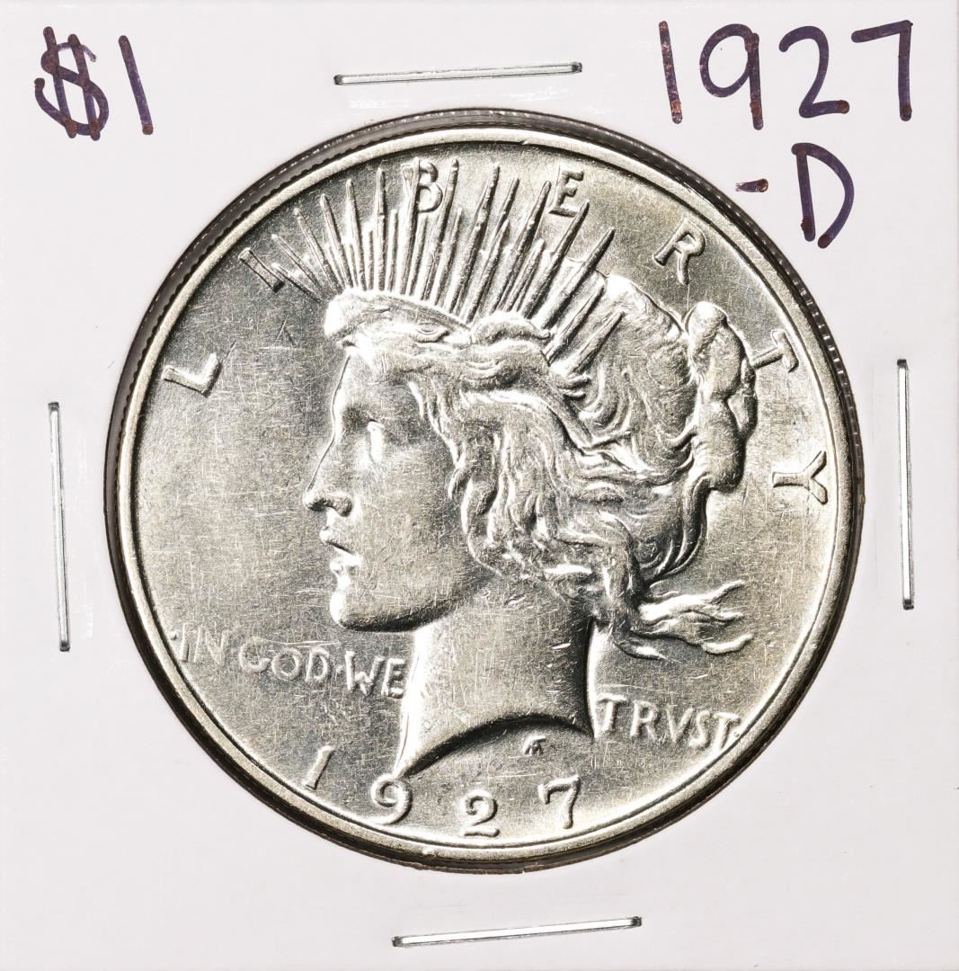 One 1927-D $1 Peace Silver Dollar Coin.