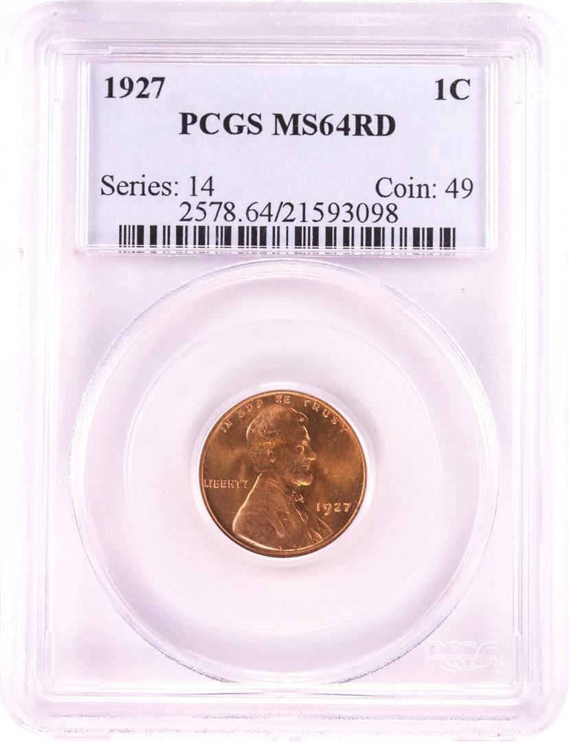 One 1927 Lincoln Wheat Cent Coin PCGS MS64RD. PCGS Graded.