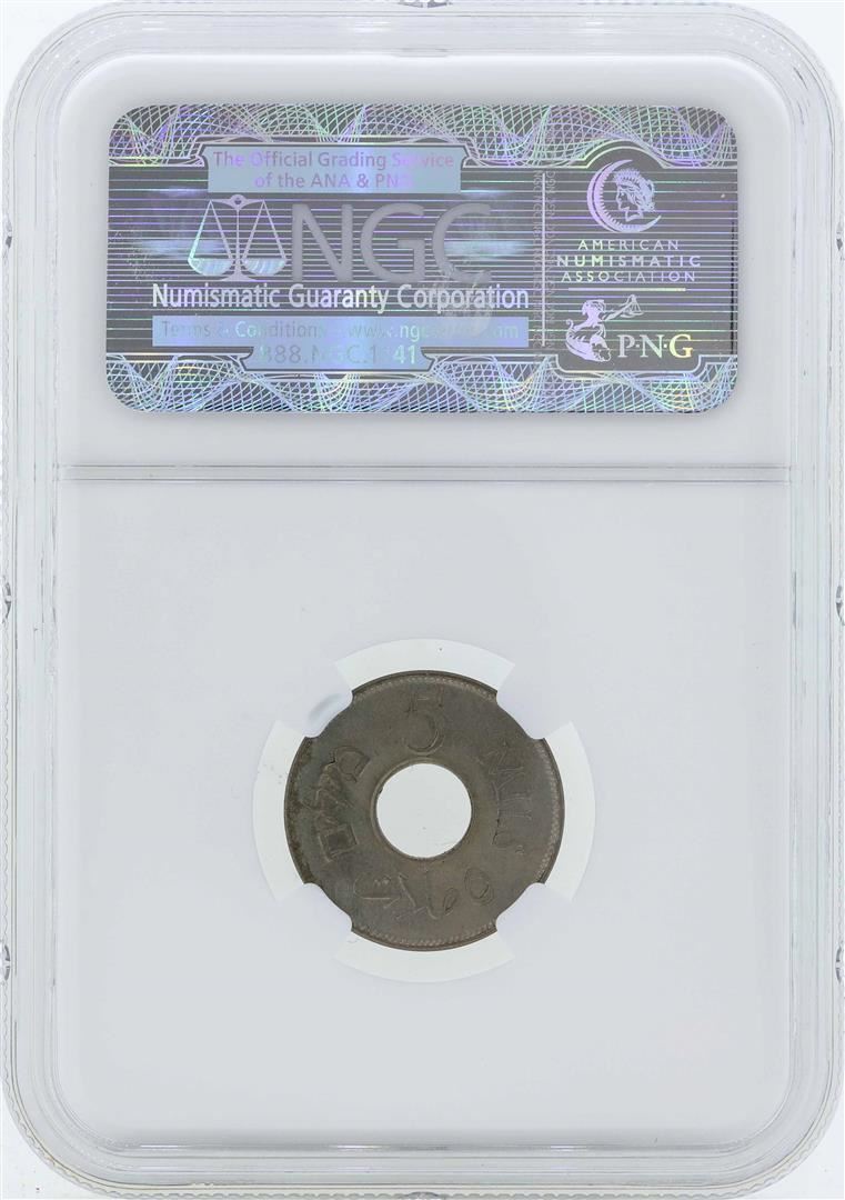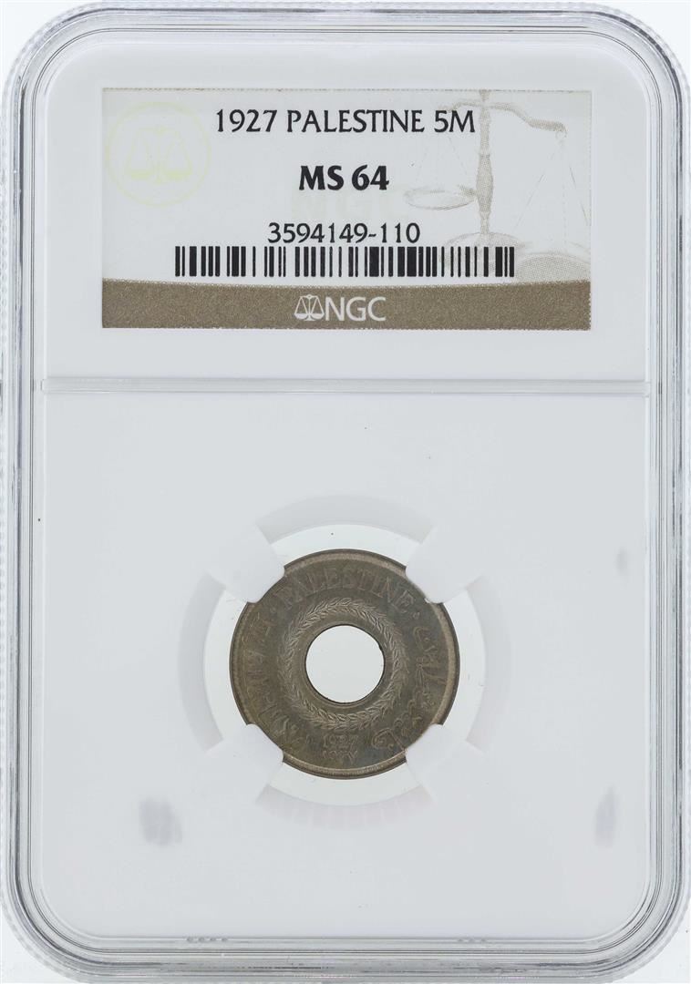 One 1927 Palestine 5 Mills Coin NGC MS64. NGC Certified.