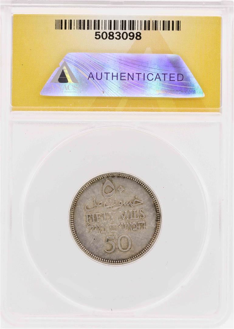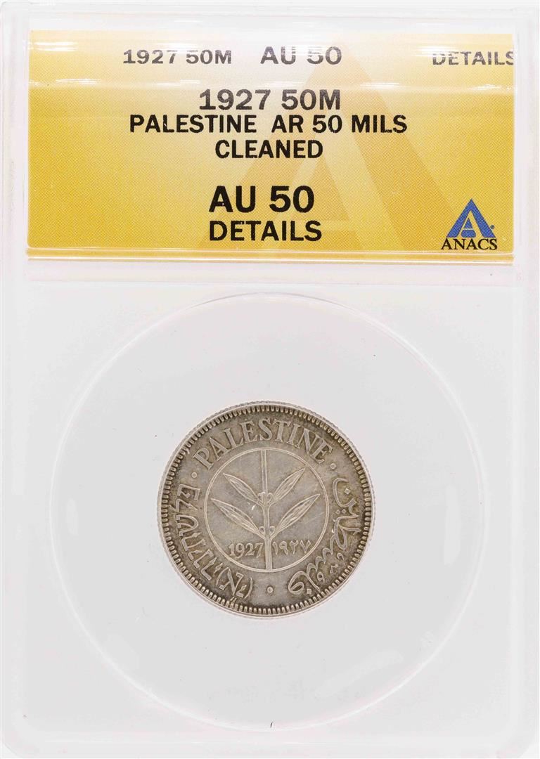 One 1927 Palestine AR 50 Mils Coin ANACS AU50 Details. ANACS Certified.