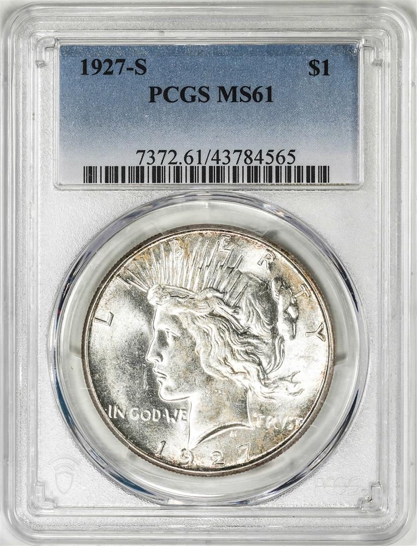One 1927-S $1 Peace Silver Dollar Coin PCGS MS61. PCGS Graded.
