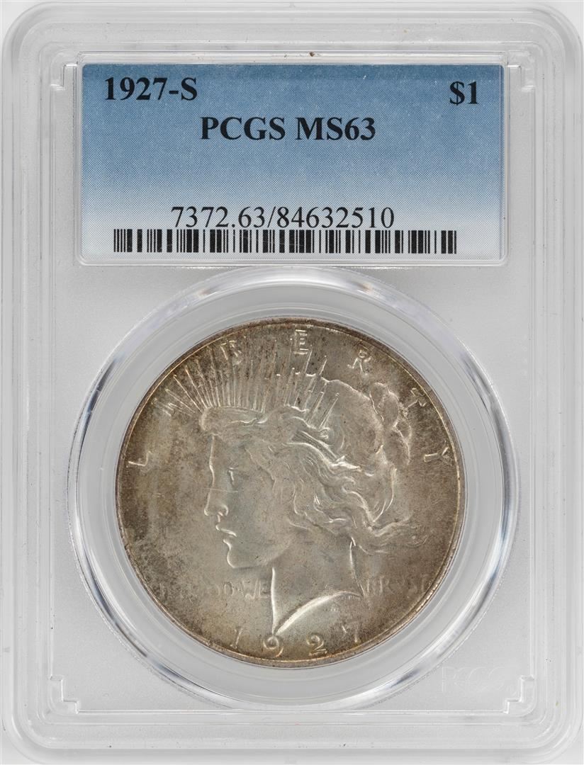 One 1927-S $1 Peace Silver Dollar Coin PCGS MS63. PCGS Graded.