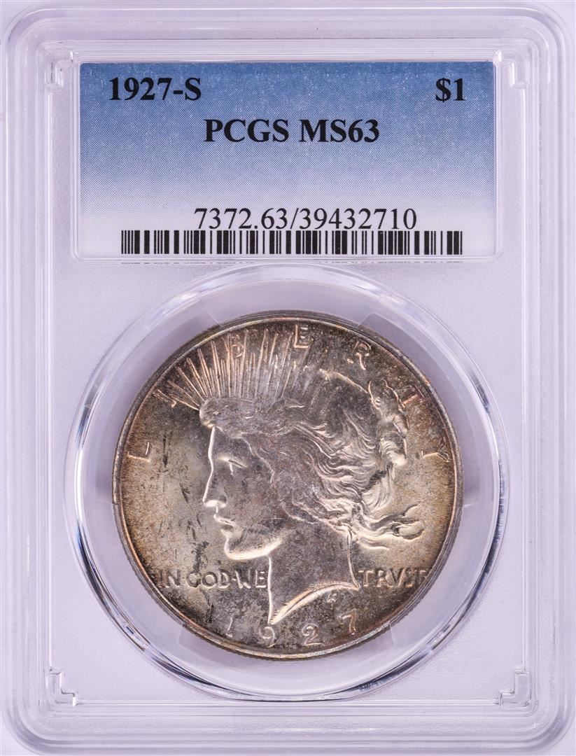 One 1927-S $1 Peace Silver Dollar Coin PCGS MS63. PCGS Graded.