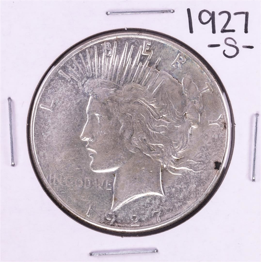 One 1927-S $1 Peace Silver Dollar Coin.