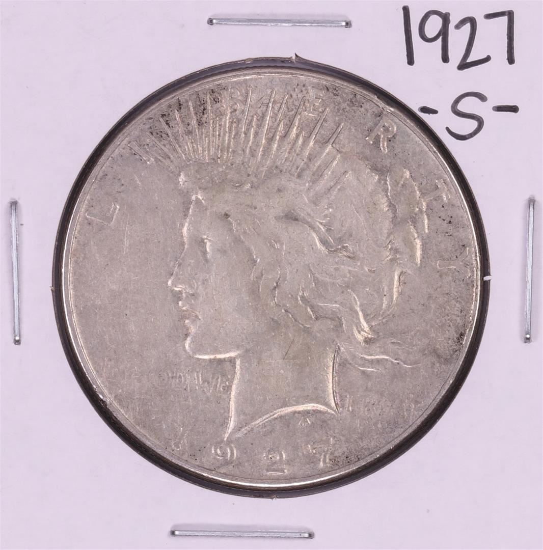 One 1927-S $1 Peace Silver Dollar Coin.