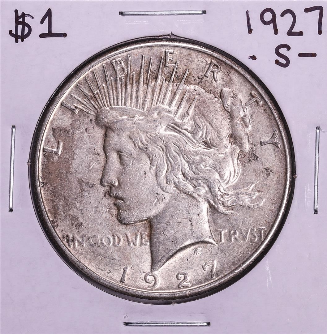 One 1927-S $1 Peace Silver Dollar Coin.
