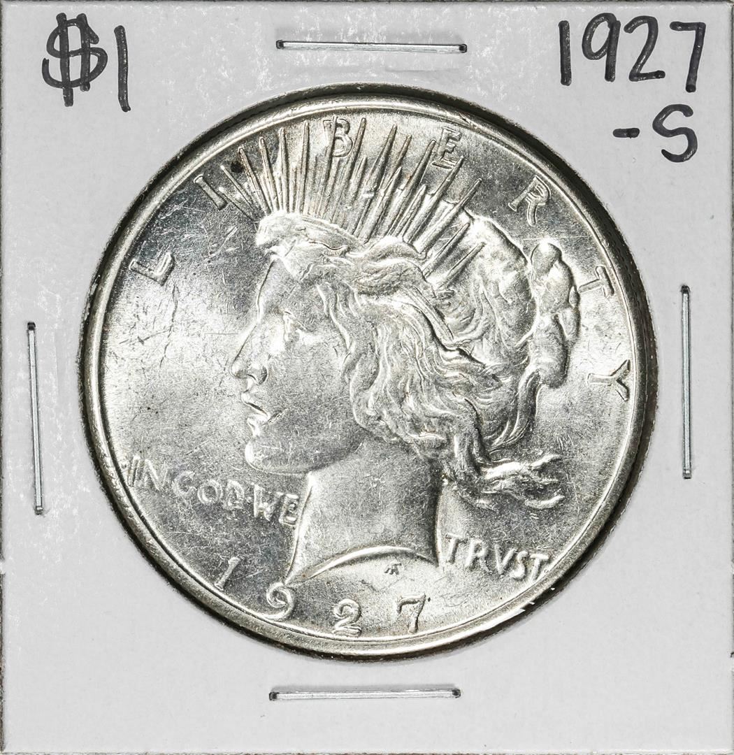 One 1927-S $1 Peace Silver Dollar Coin.