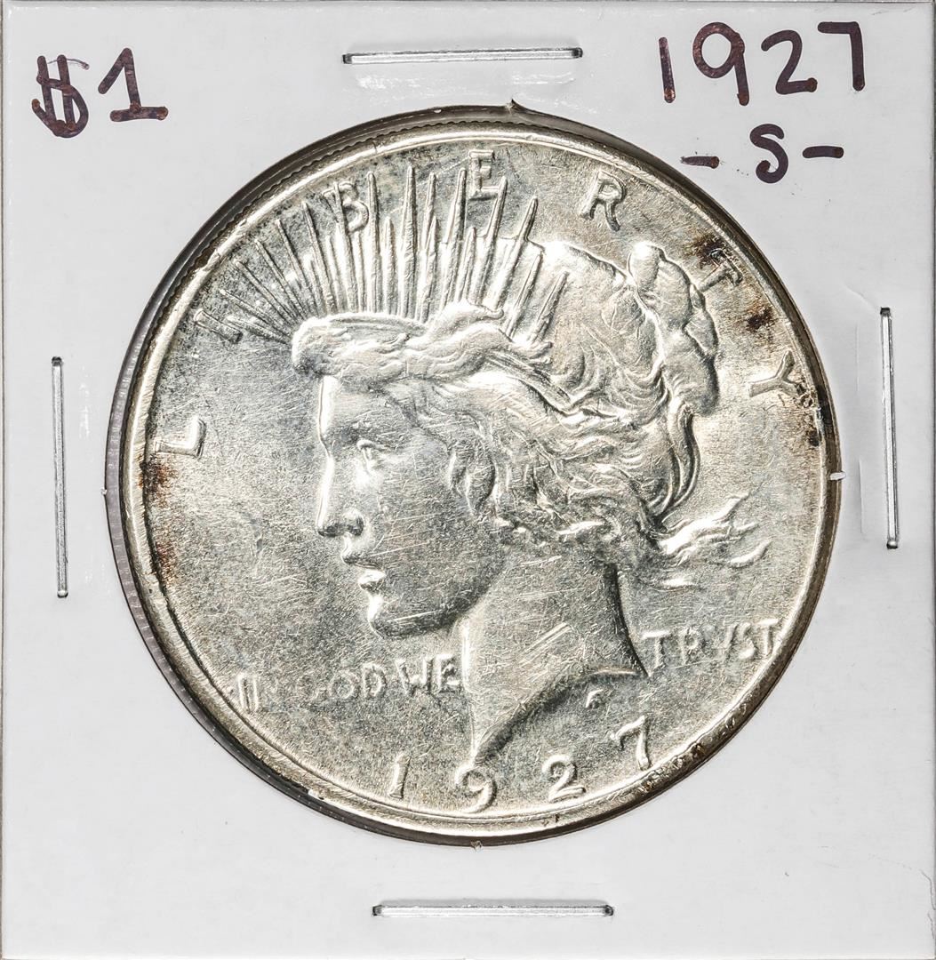 One 1927-S $1 Peace Silver Dollar Coin.