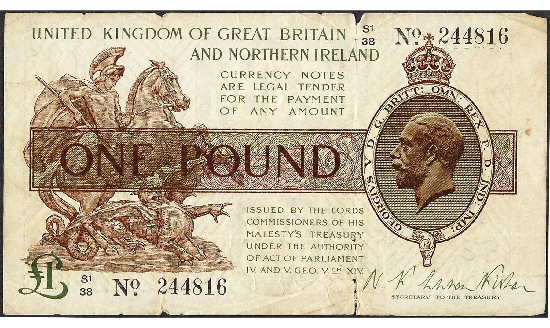 1927 UK of Great Britain and Northern Ireland Warren Fisher Pound Currency Note