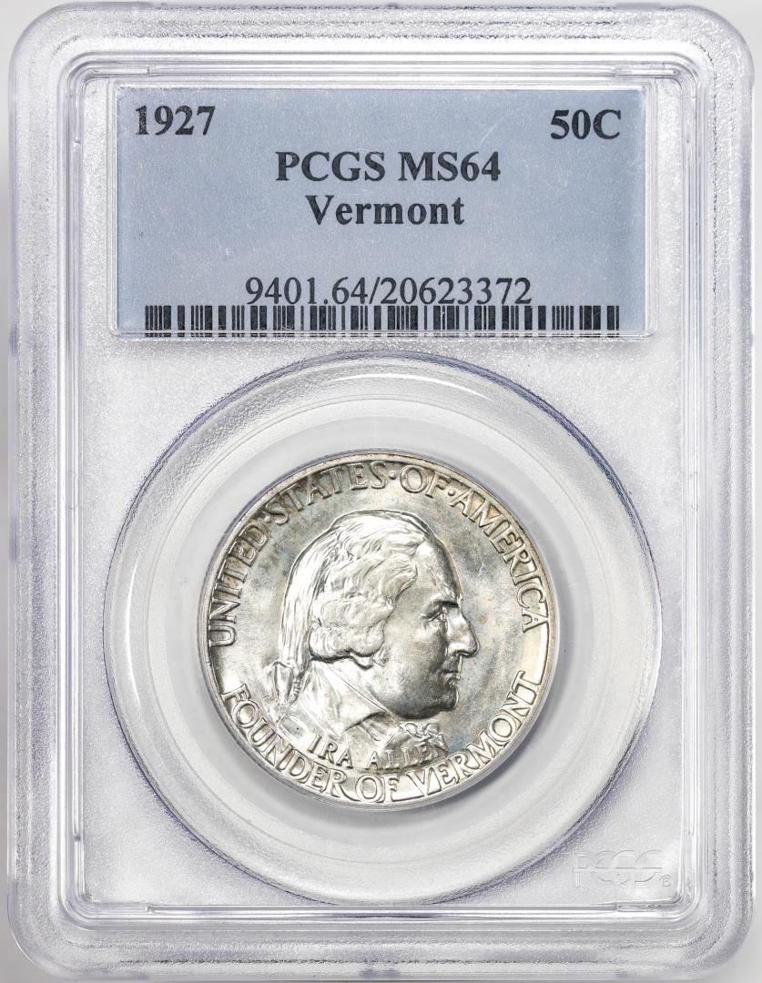 One 1927 Vermont Sesquicentennial Commemorative Half Dollar Coin PCGS MS64. PCGS Graded.