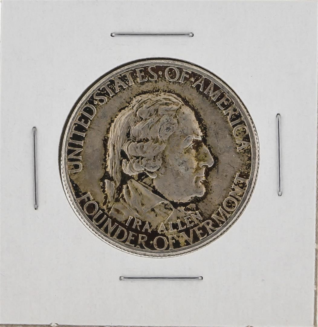 One 1927 Vermont Sesquicentennial Commemorative Half Dollar Coin.