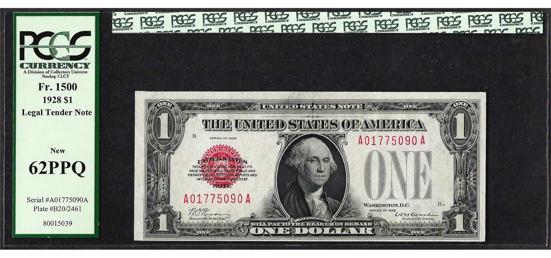 One 1928 $1 Legal Tender Note Fr.1500 PCGS New 62PPQ. PCGS Graded.