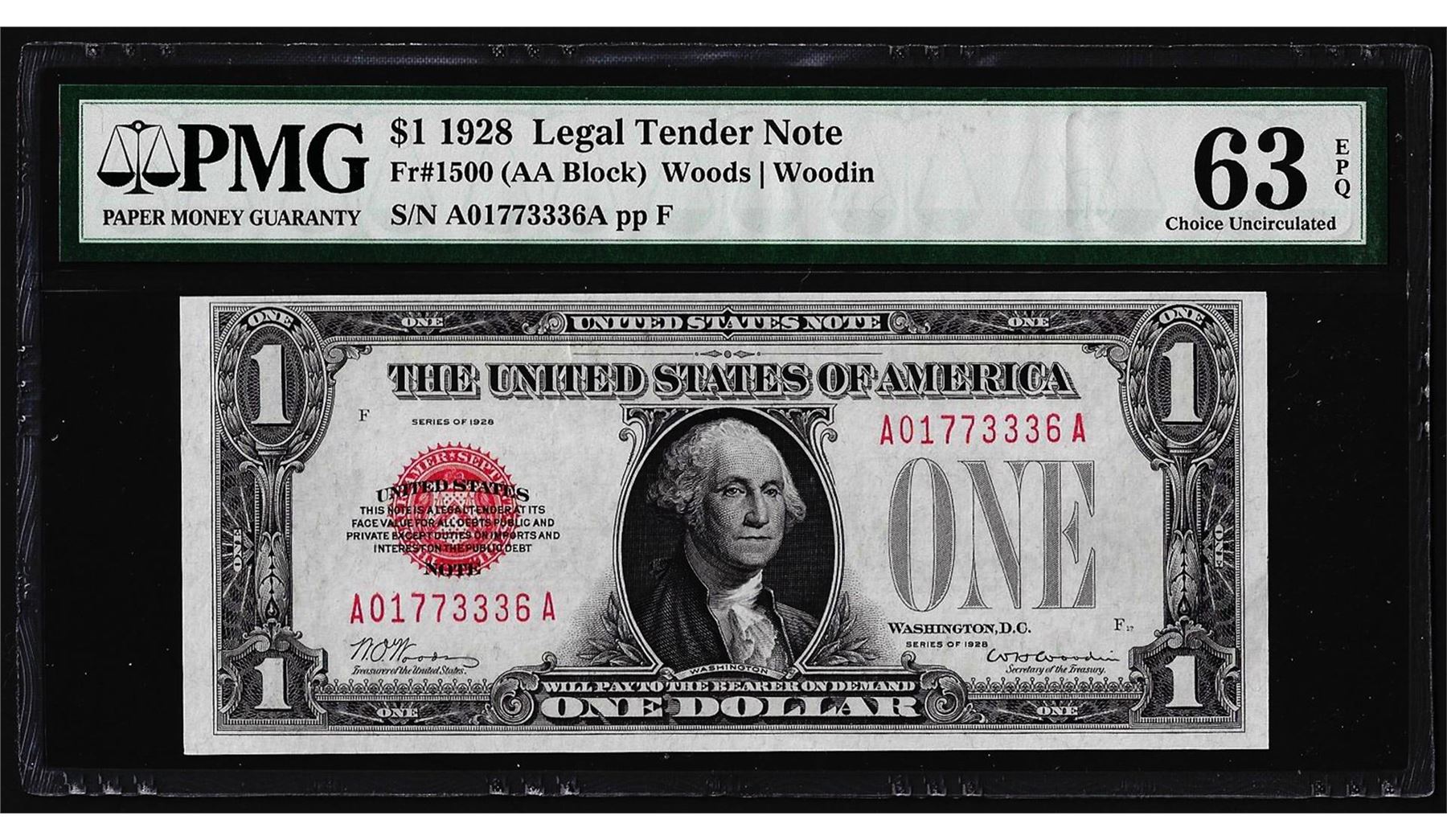1928 $1 Legal Tender Note Fr.1500 PMG Choice Uncirculated 63EPQ