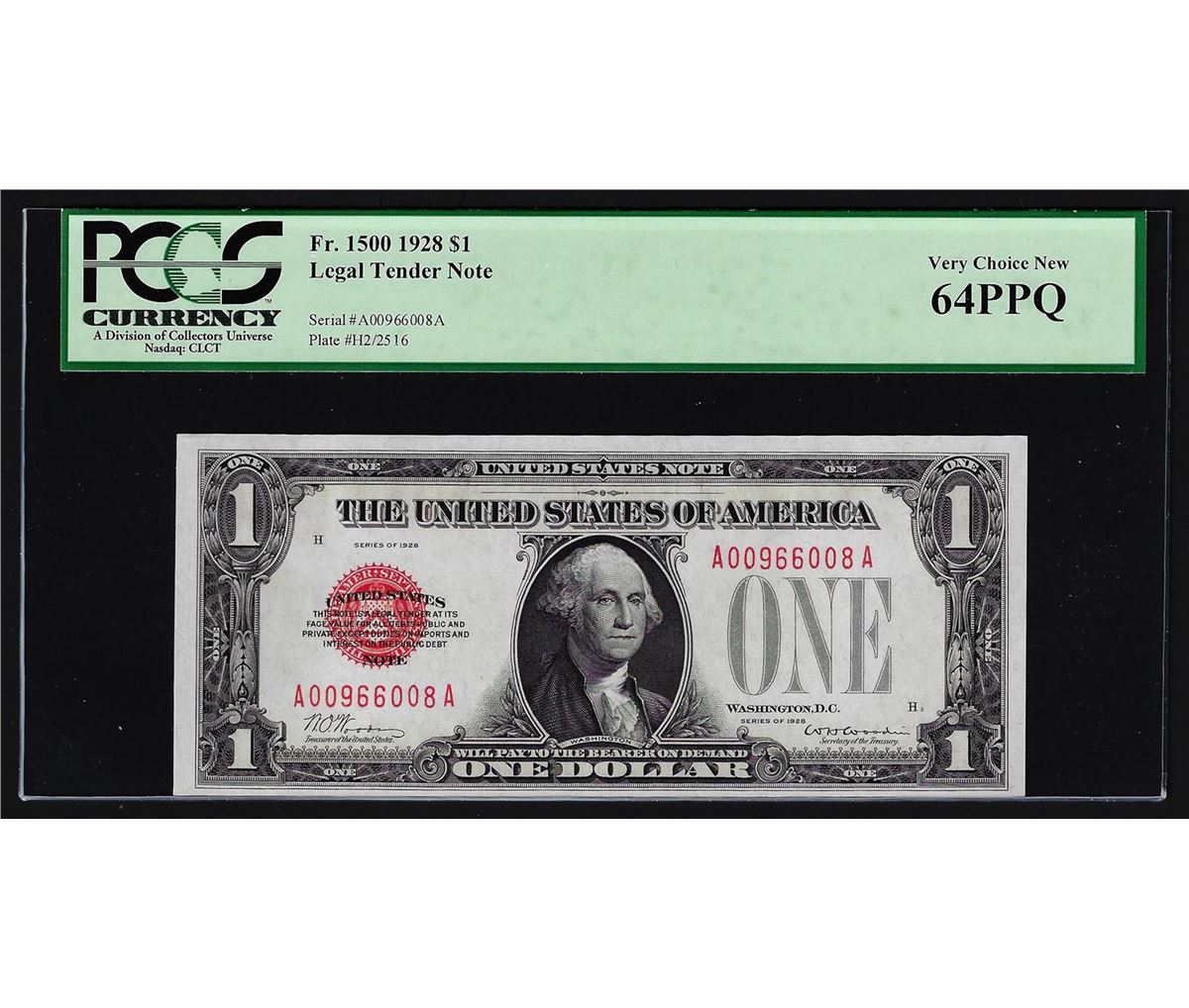 One 1928 $1 Legal Tender Note PCGS Very Choice New 64PPQ. PCGS Graded.