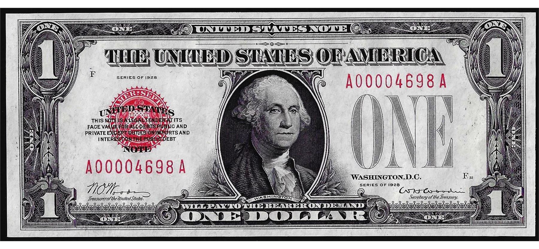 One 1928 $1 Legal Tender Note.