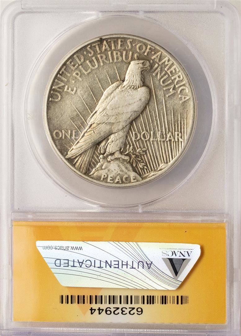 One 1928 $1 Peace Silver Dollar Coin ANACS VF35 Details. ANACS Certified.