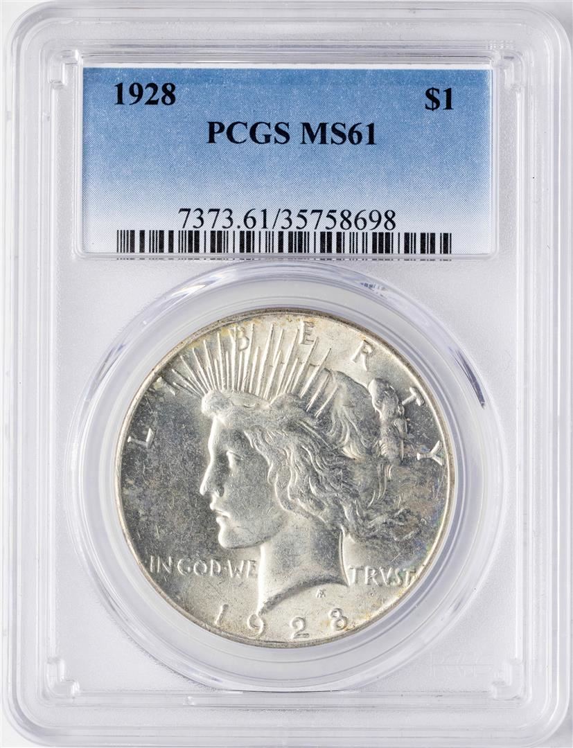 One 1928 $1 Peace Silver Dollar Coin PCGS MS61. PCGS Graded.