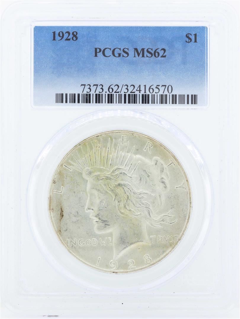 One 1928 $1 Peace Silver Dollar Coin PCGS MS62. PCGS Graded.