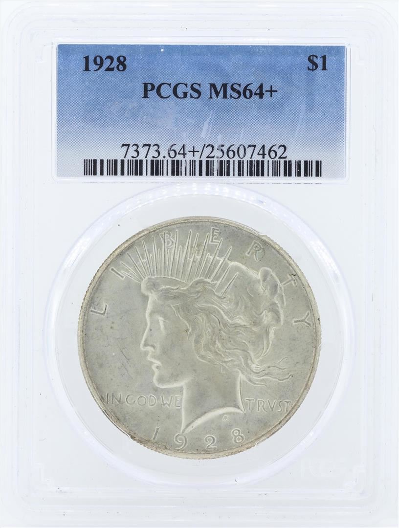 One 1928 $1 Peace Silver Dollar Coin PCGS MS64+. PCGS Graded.