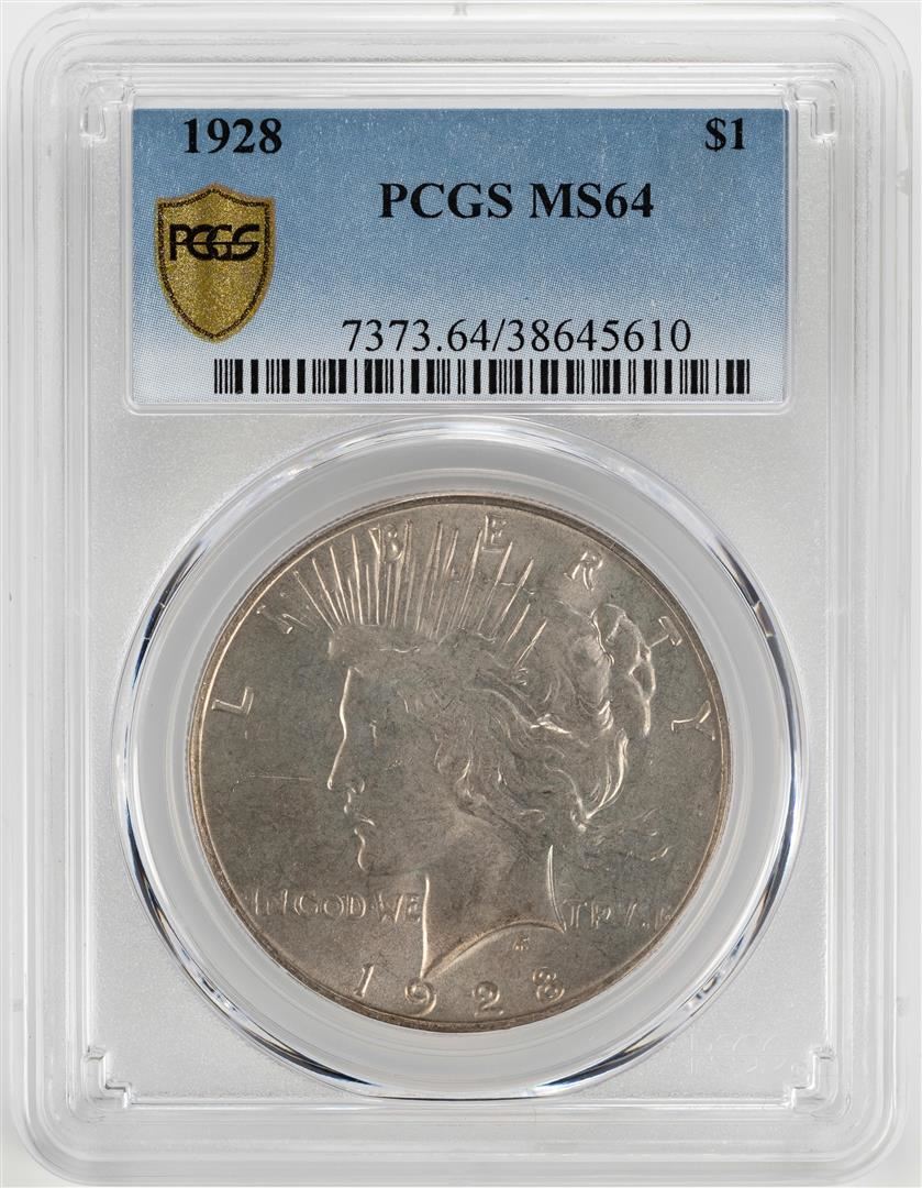 One 1928 $1 Peace Silver Dollar Coin PCGS MS64. PCGS Graded.