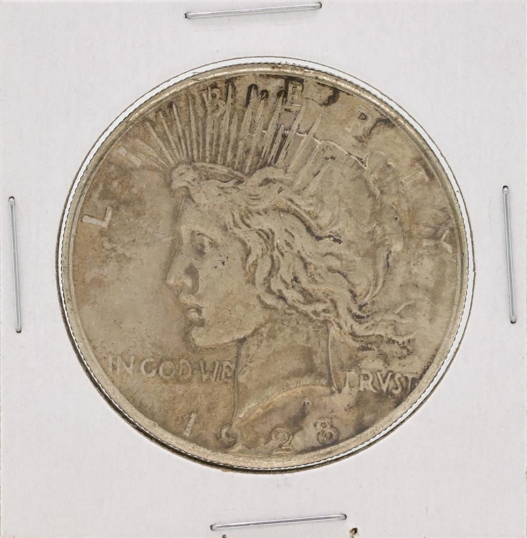 One 1928 $1 Peace Silver Dollar Coin.