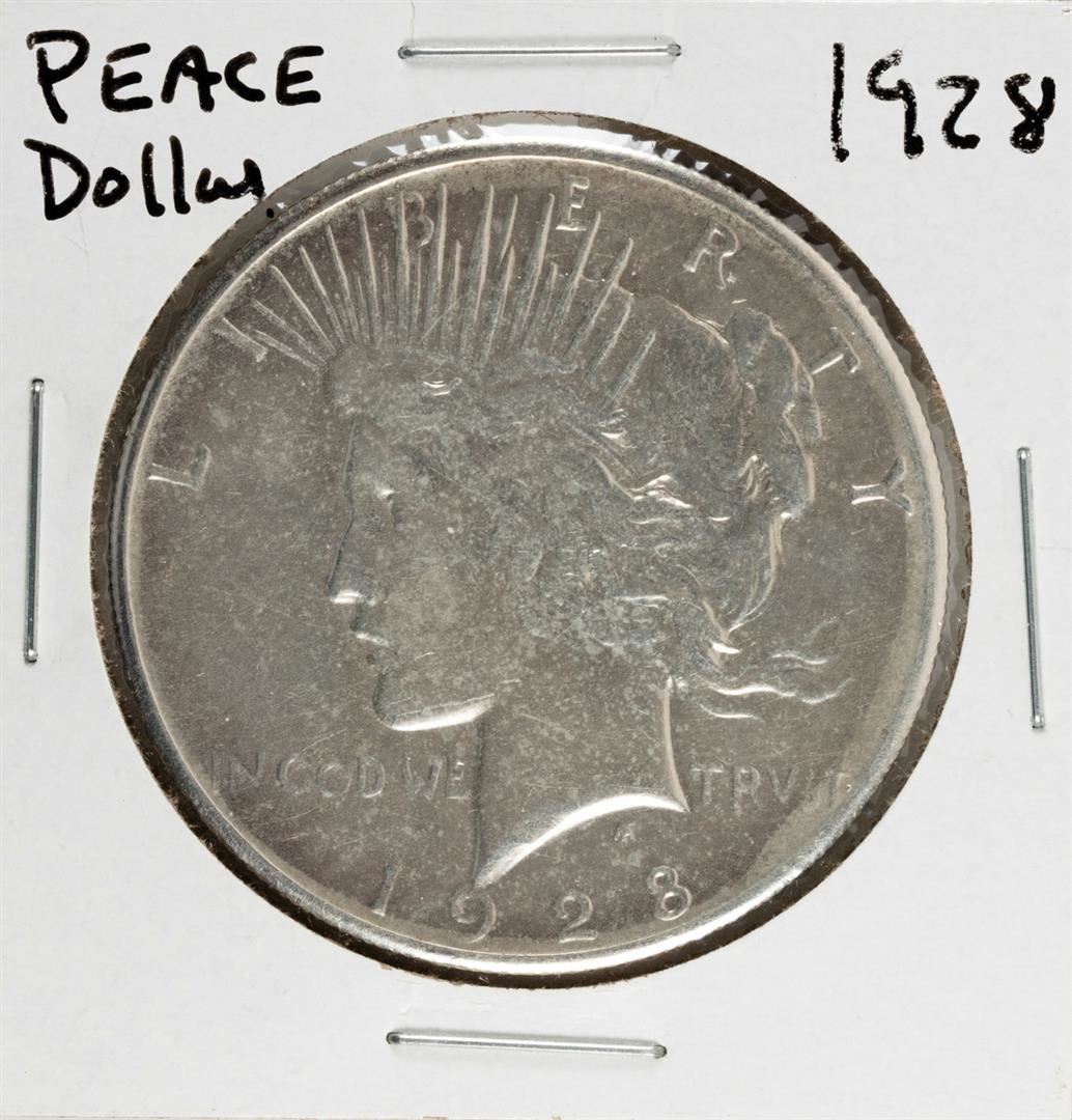 One 1928 $1 Peace Silver Dollar Coin.