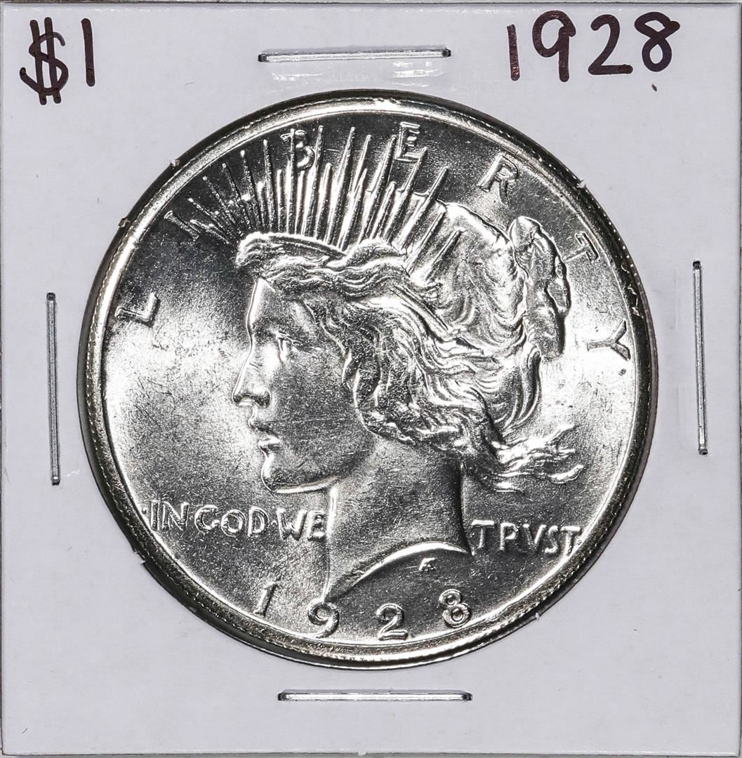 One 1928 $1 Peace Silver Dollar Coin.