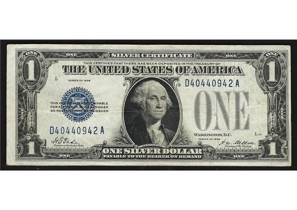 One 1928 $1 Silver Certificate Funny Back Note.
