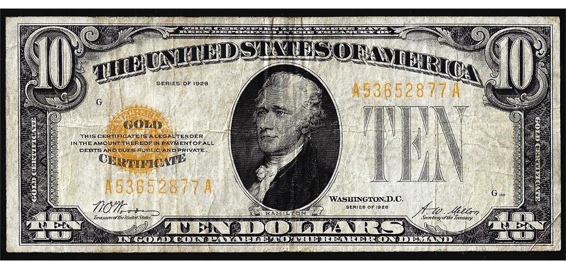 One 1928 $10 Gold Certificate Note.