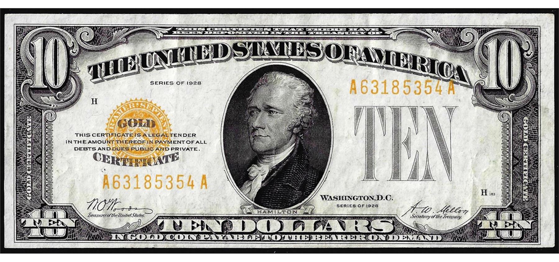 One 1928 $10 Gold Certificate Note.