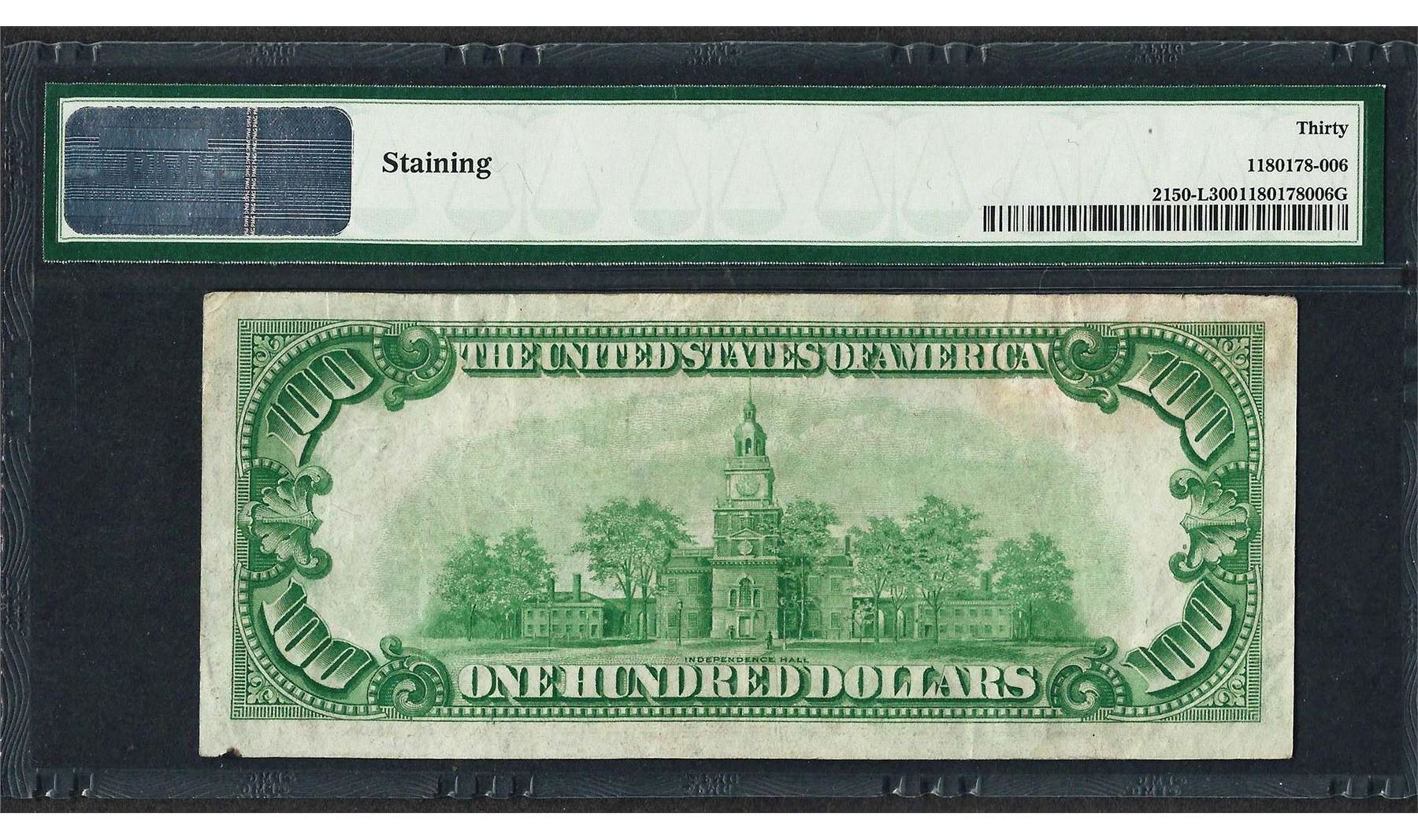 1928 $100 Federal Reserve Note San Francisco Fr.2150-L PMG Very Fine 30