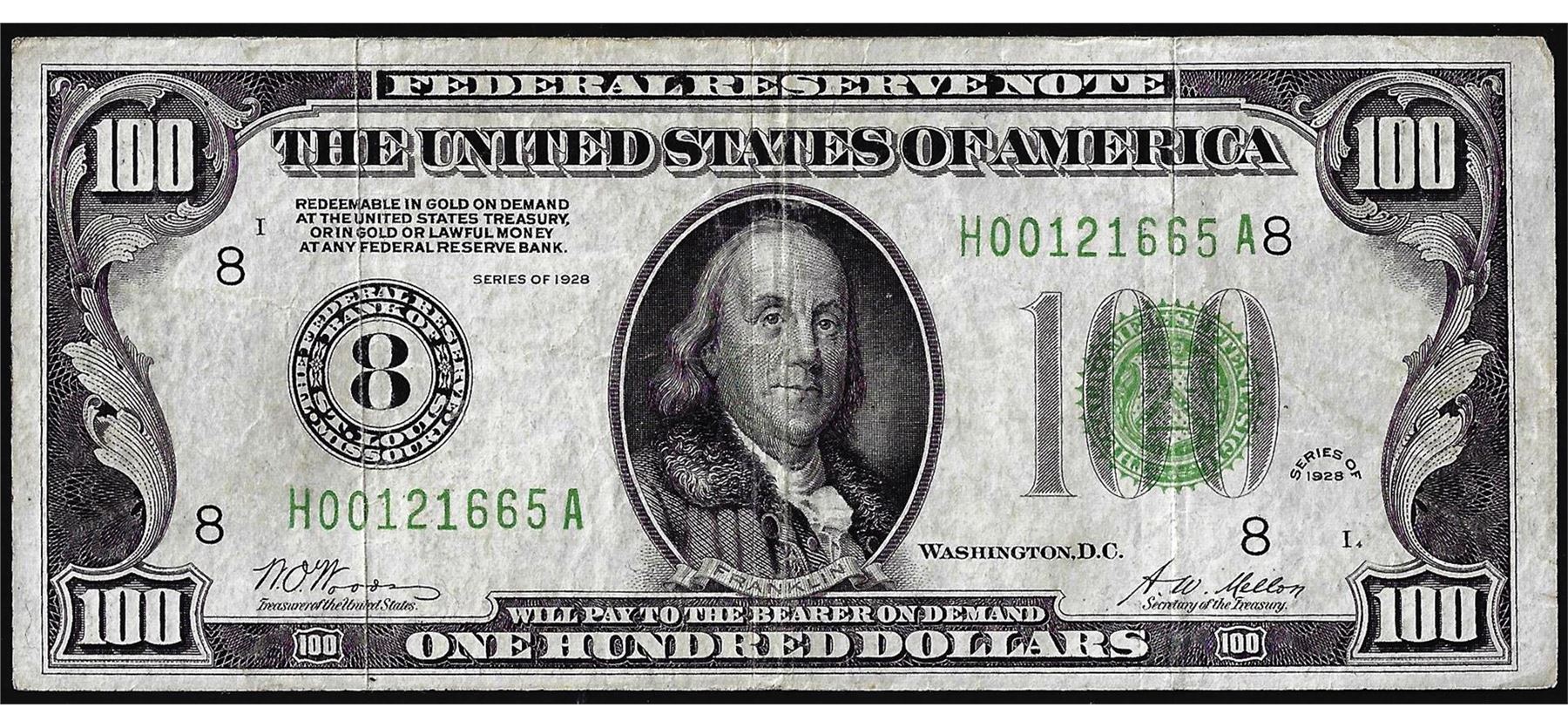One 1928 $100 Federal Reserve Note St. Louis.