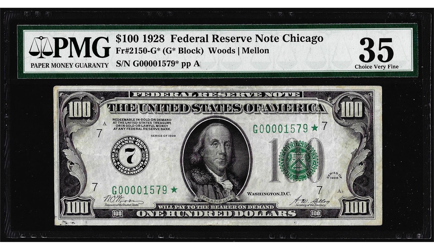 1928 $100 Federal Reserve Star Note Chicago Fr.2150-G* PMG Choice Very Fine 35