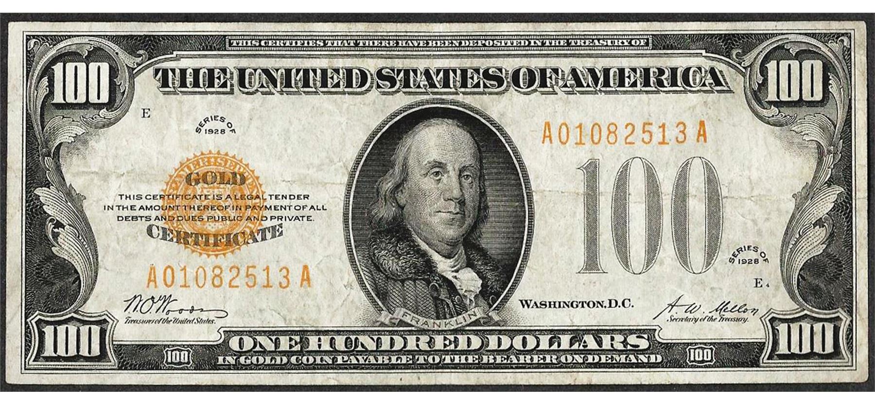 One 1928 $100 Gold Certificate Note.