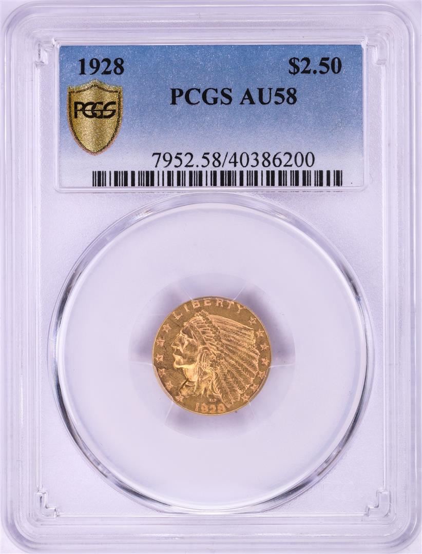 One 1928 $2 1/2 Indian Head Quarter Eagle Gold Coin PCGS AU58. PCGS Graded.