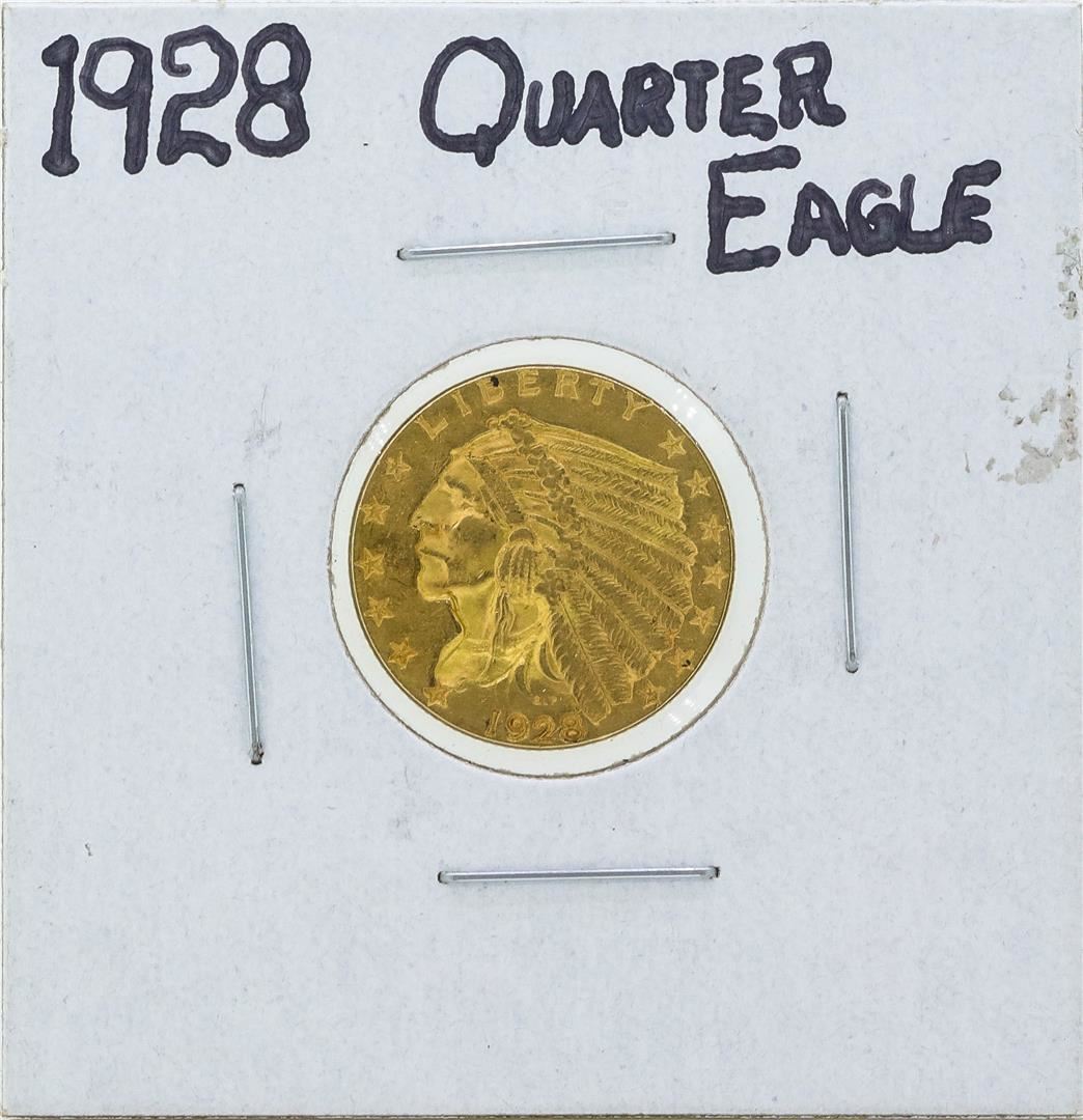 One 1928 $2 1/2 Indian Head Quarter Eagle Gold Coin.