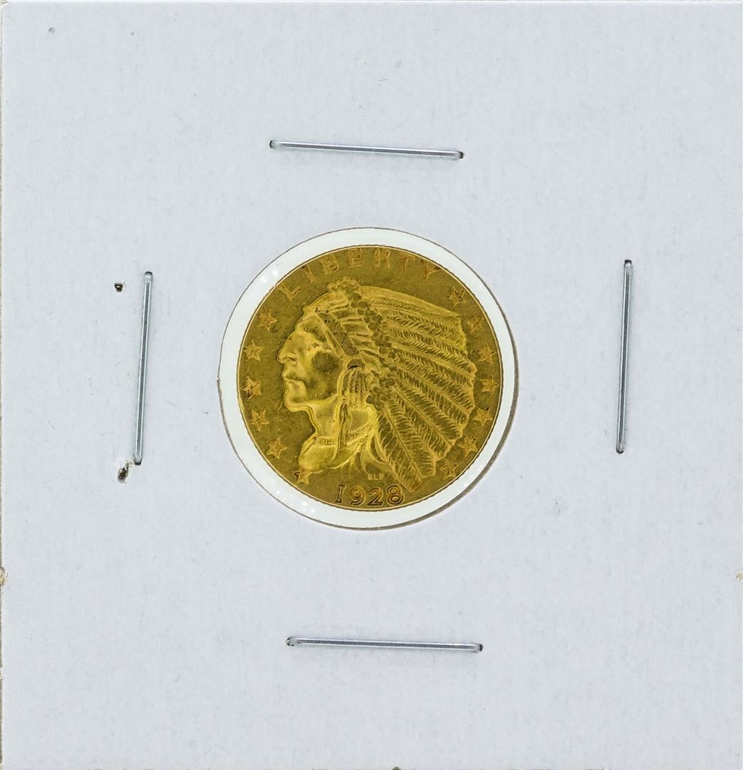 One 1928 $2 1/2 Indian Head Quarter Eagle Gold Coin.