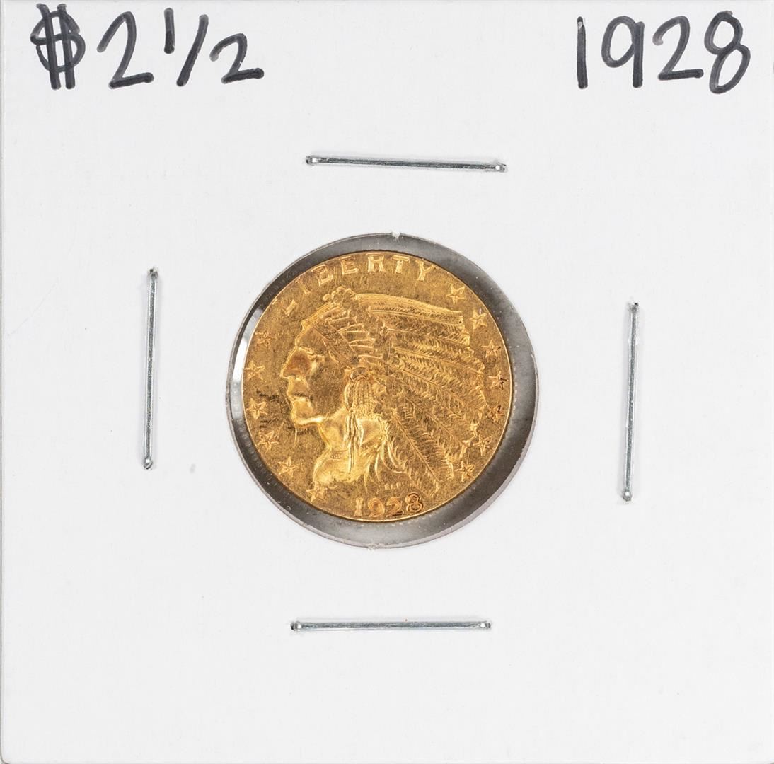 One 1928 $2 1/2 Indian Head Quarter Eagle Gold Coin.
