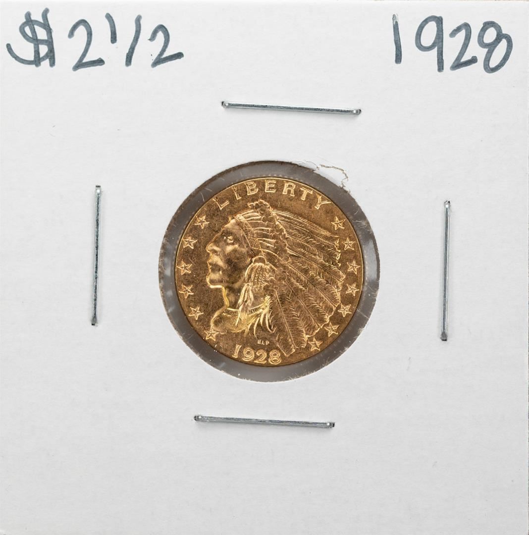 One 1928 $2 1/2 Indian Head Quarter Eagle Gold Coin.
